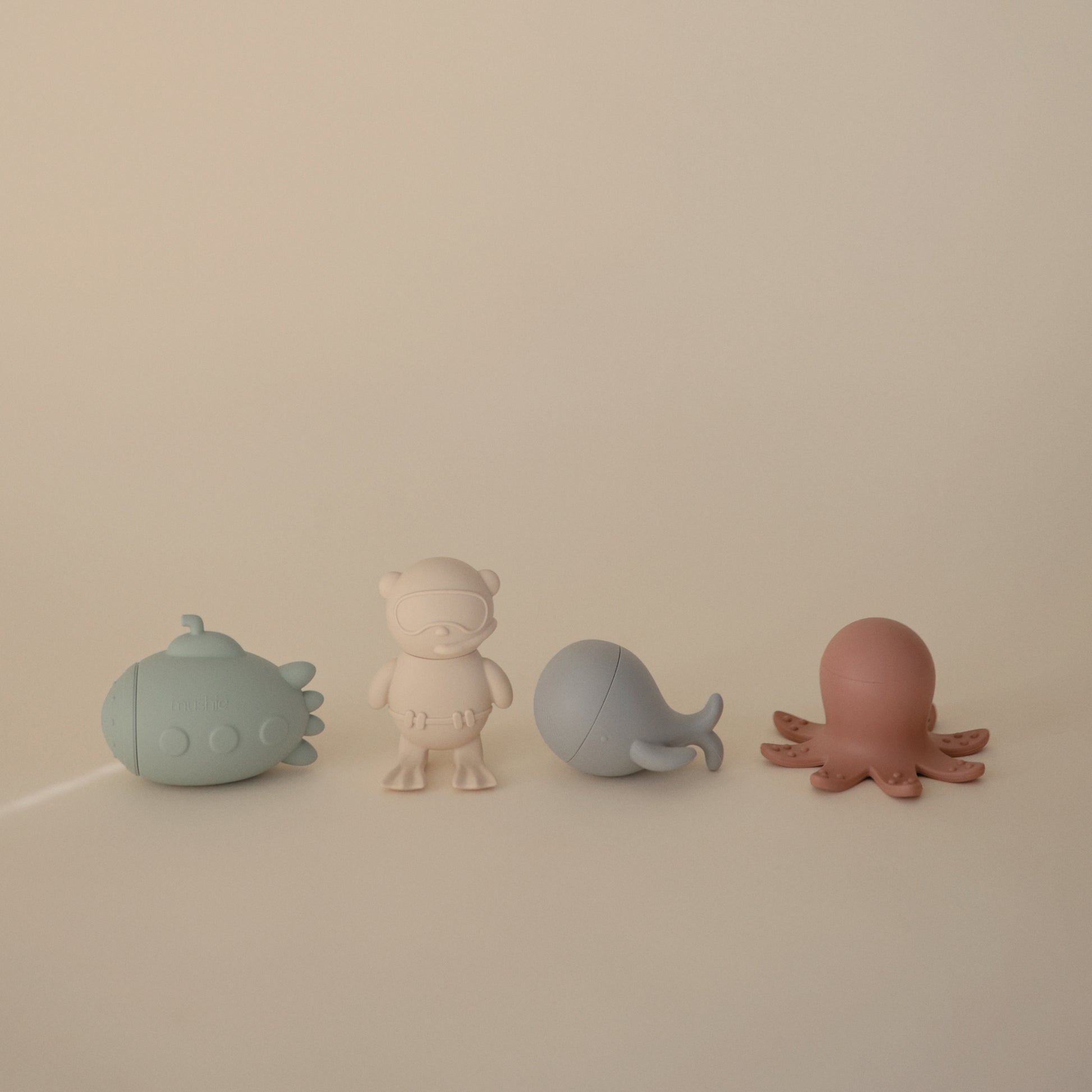 Make a splash at bathtime with the sealife bath play set that includes a submarine, scuba diver, octopus and whale. Made from 100% food grade silicone, the soft material is easy for little hands to hold while wet or dry. Its inventive design allows each toy to open into two separate pieces for thorough cleaning and fast drying. This feature allows the toys to remain mold-free with its easy-to-clean pieces that are dishwasher safe. After each use, we recommend opening the pieces to rinse out and air dry before storing.
